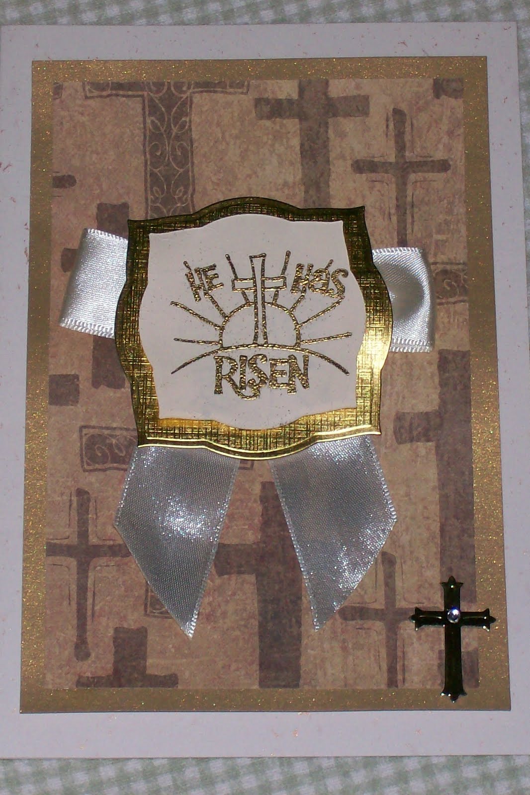 It has been difficult to find Christian themed papers and I was very pleased when a saw these 2 at Hobby Lobby which I used for the backgrounds of some of my cards . Inside the cards I printed this verse on Vellum on my computer printer and mounted on ivory cardstock sprayed with gold Glimmer Mist...