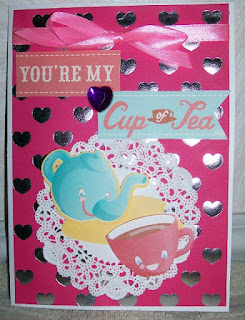 I wanted to post a photo of a Valentine card that I made for a friend - using the Cricut Imagine machine and new Greeting card cartridge... I just love the tea-pot and cup images !
