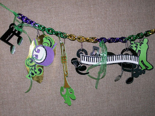 Next we have some photos of my Mardi Gras decorations that I have put up in my office this week....Used the Cricut Cartridge "Quarter Notes" and the Expression machine, and also the Mask from another cartridge ( I can't remember which one now !) Oh well - maybe because on Mardi Gras this year I will turn 60 years old ! A great way to celebrate my birthday ! - Til next time .....