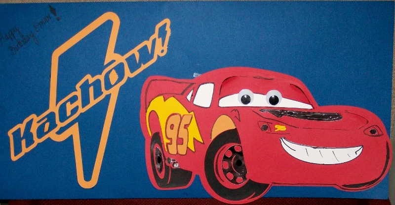 What little boy doesn't love the "Cars" movie from Disney ? My Grandson asked me to make him a card with my "Bug Machine" (as he calls my Cricut) and so I got out the machine and some 24" paper and mat. This is the result of making him a "Poster Card" of McQueen, which he now has hanging over his bed.
