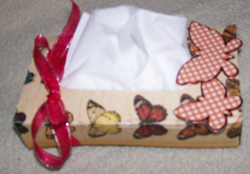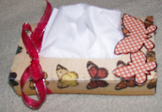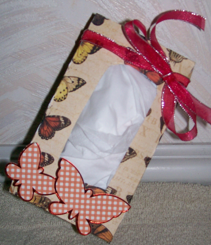 I found out that you can get a big 12 pack of these little tissues at a local Dollar store and they are nice , but "Utilitarian" and so I thought, why not make a "cover for them".