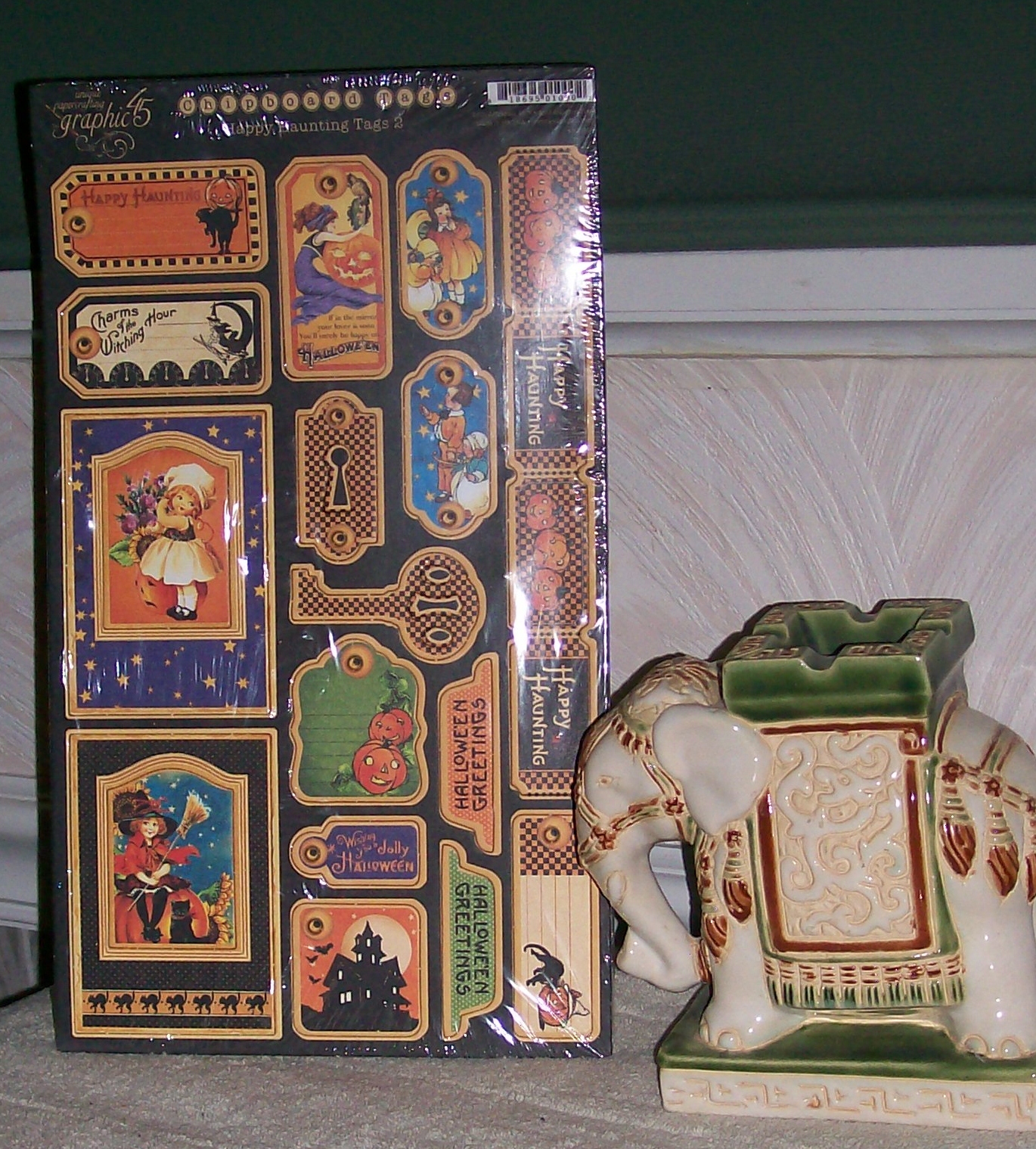 The prize is this set of GRAPHIC 45 "HAPPY HAUNTING" ChipBoard Embellishments !! Woooo Hooooo !! Good luck to all !!!!! ( Sorry.....My vintage elephant is not part of the deal )