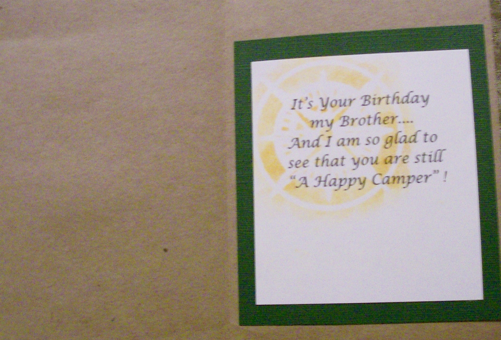 Great looking card, sure your brother will love it, especially the tribute to your mother. You and your brother make a great pair, one a happy camper the other a happy crafter! Happy Birthday to you both :-)
