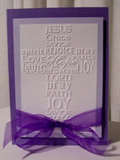 You will be glad to know that things are back to normal and I am posting the winner late again ! ha ha - it is so out of character for me to post on Sunday nights anymore...I just don't seem to be able to get everything ready by midnight, but I try...Well, now this week's winner of the Cricut Smiley folder is............ BETH !! So, be sure to send me your name and addy so that we can be sure to get this in your Easter basket this week !! I will not be posting any Blog Candy this week as I will be pretty busy for Easter, besides, you will probably be getting lots of "candy" anyhow !! Check back in 2 weeks for a new prize ...I have been furiously putting together some Easter cards the last couple of days. I am behind on things due to a death in the family this past Friday, and it delayed me some. I wanted to make cards for all of my elderly aunts and uncles for Easter. I try to let them know that I am thinking of them at this Holy time, and wish God's Blessings upon them. Most of them live very far away from me and I do not get to see them very much, so I feel like sending cards is an important part of my life.