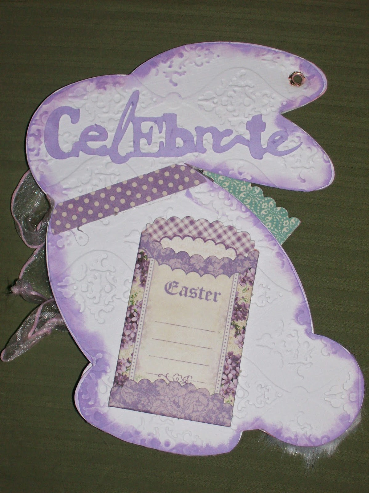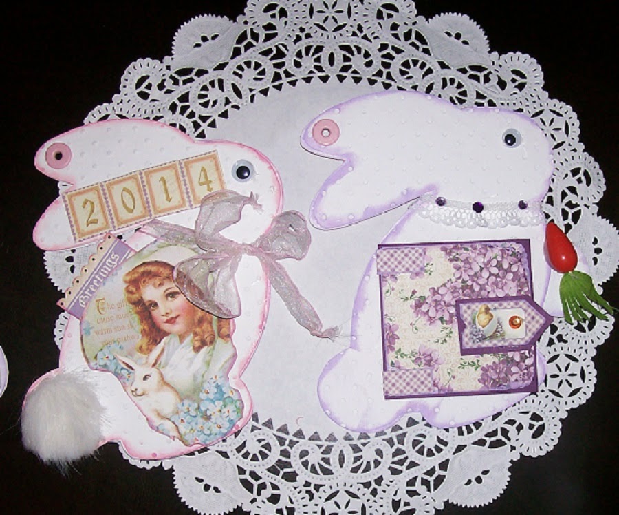 I wanted to show you the pictures from the beginning on this, and how I found these 8 1/2" x 11" Embossing folders from EBOSSER to be so handy at being able to emboss the entire "bunny" all at one time - in fact I could emboss TWO bunnies at a time !!  See the last 3 photos !!  :>)