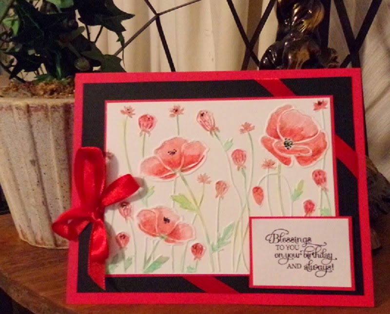 It is not too fussy (as it is for a gentleman) but I thought the colors turned out well and the accent of red silk ribbon and a tiny bit of "Black Diamond" stickles for a hint of flower stamens added just enough pizzazz !