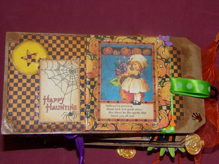 90% of this album was made using papers from the "Happy Haunting" collection that was out 2 or 3 years ago for Halloween. It was very whimsical and sweet, and reminded me of my childhood days as a "Trick-or-Treater" ! Hope you enjoy the pictures. Don't forget to see my Tim Holtz Day posting and leave a comment if you want to win a great prize !!